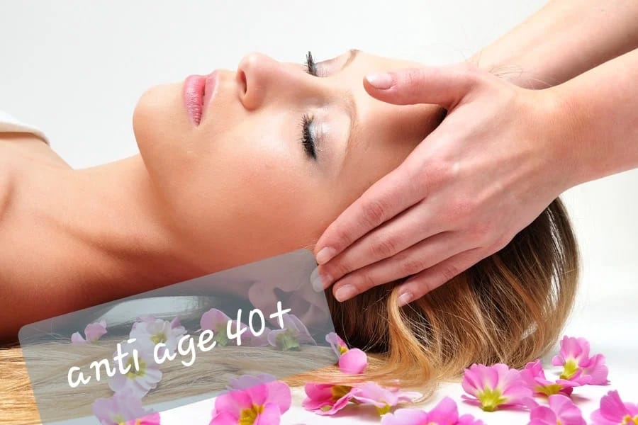 Ošetření vhodné pro 40+. Povrchové čištění, úprava obočí, změkčení a hydratace pleti, hluboké čištění podle hydratace pleti a ultrazvukovou špachtlí, intenzivní masáž, proti vráskám s tlakovými body kolem páteře a masáž horní části šíje, anti-age vypínací maska, regenerační maska, hydratační oční a pleťový krém.